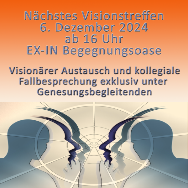 Die Visionstreffen sind ausschließlich für Genesungsbegleitende konzipiert. Die Teilnehmenden tauschen sich über Ihre aktuelle berufliche Situation aus.
