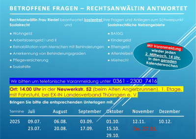 15.10., 29.10.2025 (am 01.10. keine Rechtsberatung wegen Urlaubes)