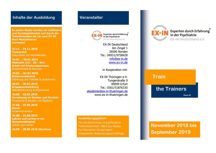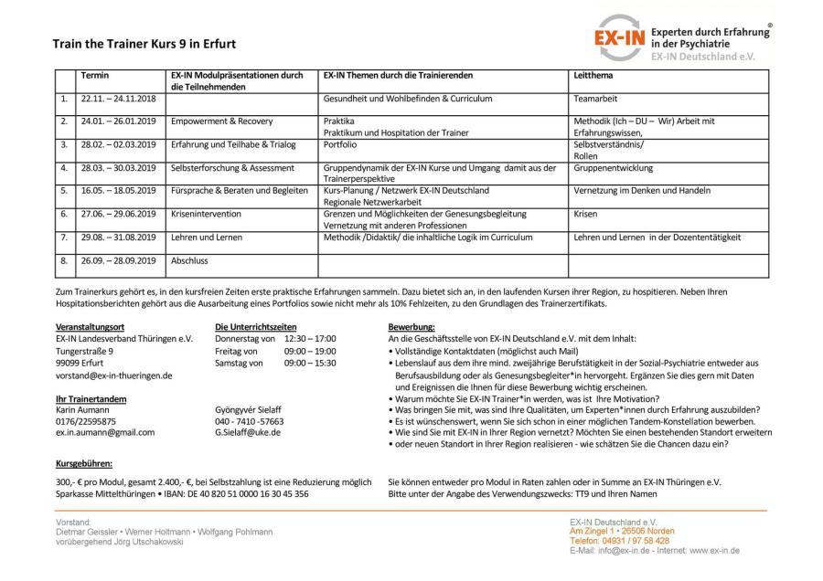 mit dem oben genannten Hintergrund, die Interesse haben einen EX-IN Kurs durchzuführen.